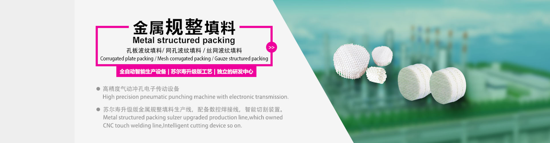 目前工業(yè)上應(yīng)用的規(guī)整填料絕大部分為波紋填料,它是由許多波紋薄板組成的圓盤狀填料,波紋與塔軸的傾角有30°和45°兩種,組裝時(shí)相鄰兩波紋板反向靠疊。各盤填料垂直裝